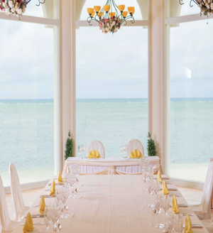 | Dinner venue | The hotel has many large banquet halls, a dome-shaped venue facing the sea, and private rooms. We recommend the party venue [Mariage Room] closest to the sea in Okinawa. It creates the happiest moment that feels like a scene from a movie. Surrounded by the sea and sky, the Rizan Blue Wedding brings happiness to both of you. |